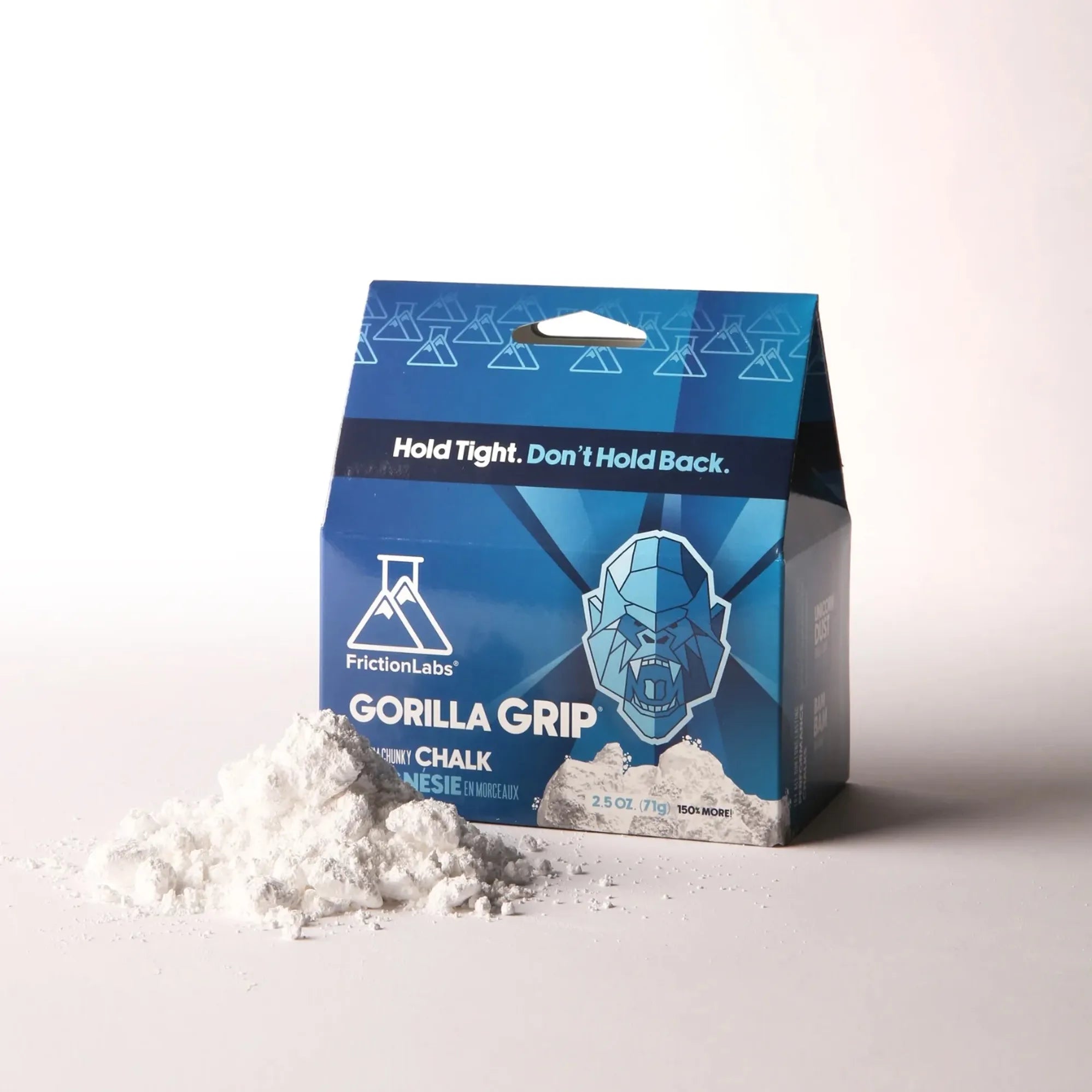 The Gorilla Grip is Friction Labs middle range chalk which is a great all rounder and not too chunky but not too fine either!