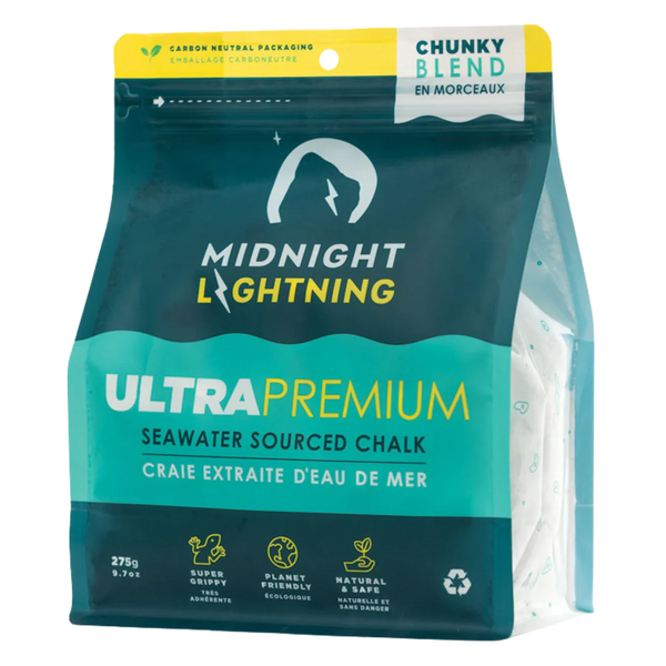 What they say: Our ultra-pure, high-performance chunky chalk is made from the mineral contents of seawater. No destructive mining here! This chalk is produced using solar evaporation to help reduce energy input. This, combined with our plant-based packaging (which is also fully recyclable!) leads to a lower environmental footprint vs. other chalks.
