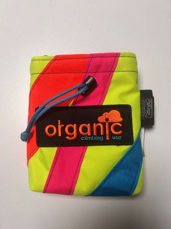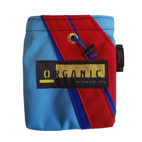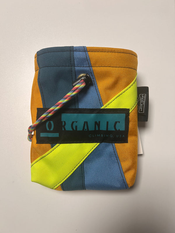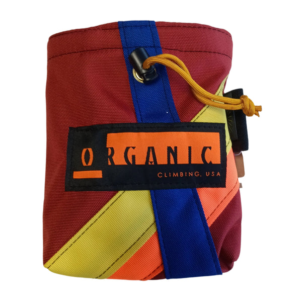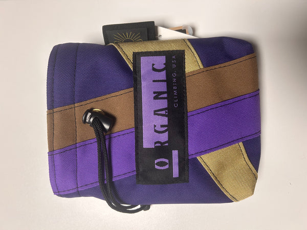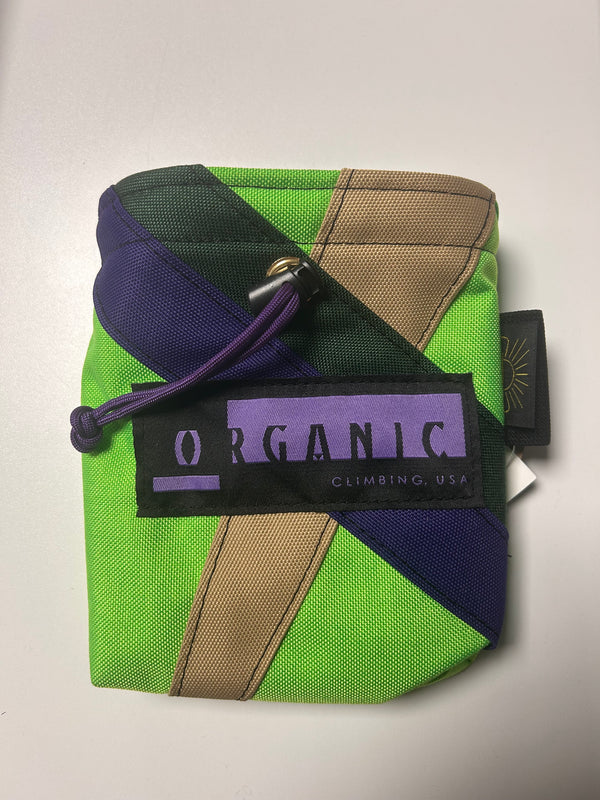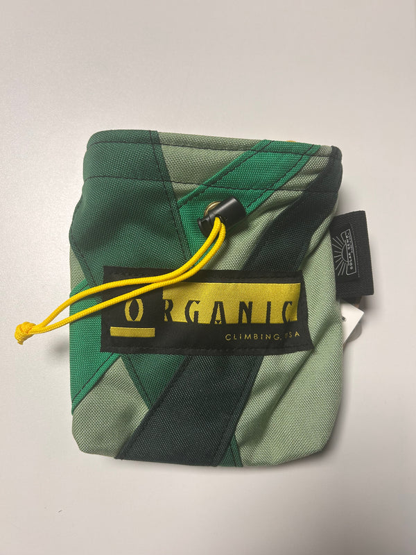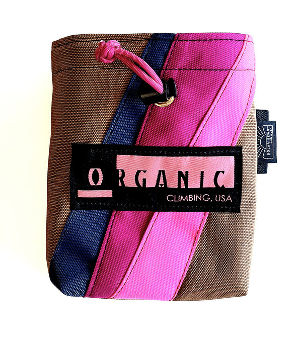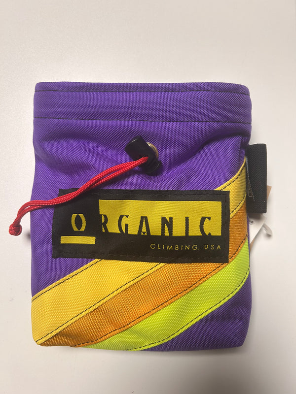 Made from your choice of colours in assorted one of a kind designs by recycling our cutting scraps, the Chalk Bag includes waist belt. 1000d Cordura nylon shell with Polyester fleece liner.