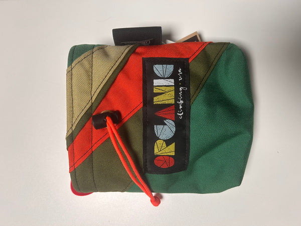 The ultimate climbing accessory, you can never have too many chalk bags! Guaranteed to be one-of-a-kind, we build our chalk bags from recycled cutting scraps from the production of pads and other items in our workshop. After 10 years of sewing our chalk bags, we have updated the current version with a super stiff rim for easy chalking and a clean aesthetic.