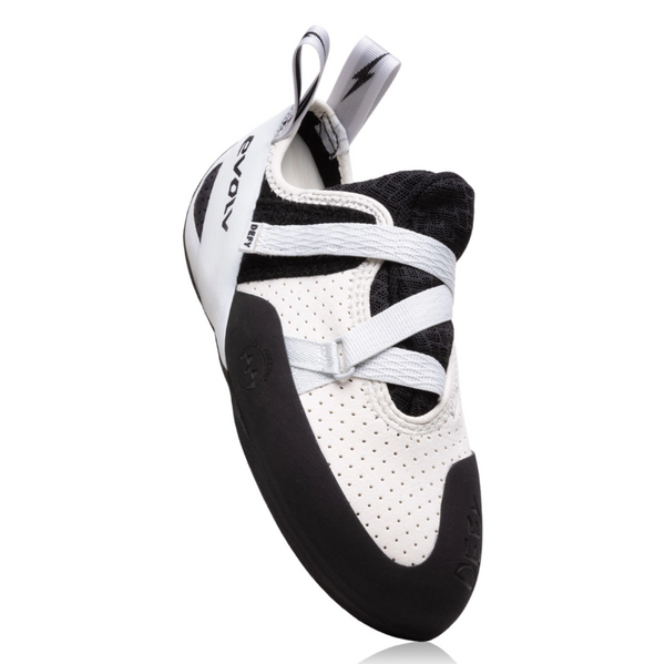 What Evolv say: The most advanced entry level shoe on the market. Slight camber and more asymmetric fit than traditional entry level shoes. Creates a more precise connection between climber and hold. Strap version softer than lace up for increased sensitivity. PSR 4. The LV model has 6% lower overall volume than Defy for narrower feet or a snugger, higher performance fit.