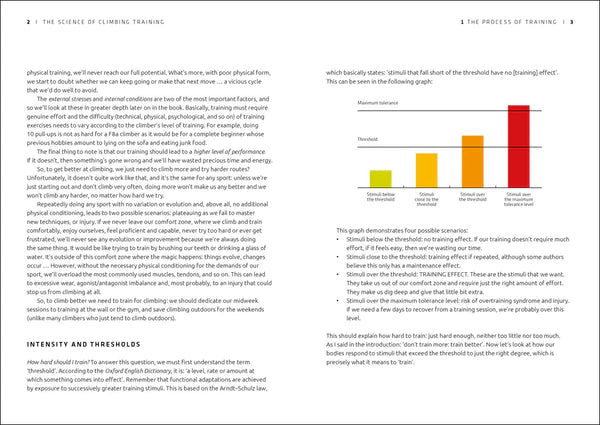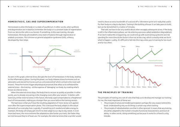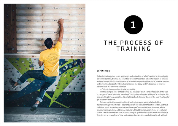 The first part explains what training is and how different training methods are governed by the physiological and biomechanical processes that occur in the body. The second part looks at how to improve specific needs (such as finger strength and forearm muscle endurance) and general needs (such as basic physical conditioning, pulling strength, pushing strength, strength training for injury prevention) for the different demands and types of climbing and bouldering. The third and final part suggests the best ways to fit it all together. It looks at adjusting training volume and intensity, and tapering to encourage supercompensation, all to help us achieve improved performance, whether it’s a breaking into a higher grade, ticking that long-standing project or climbing a dream route.