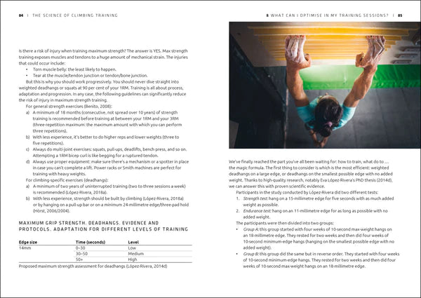 About The Science Of Climbing Training: When it comes to training for climbing, there is an overwhelming amount of information out there. In The Science of Climbing Training, top Spanish climbing coach Sergio Consuegra has analysed our sporting needs from the perspective of exercise and sports science to provide an evidence-based approach to training for climbing. It is designed to help us improve climbing performance, whether we’re taking the next step in our training as we work towards a project, or if we’re a coach looking to optimise our athletes’ training. It doesn’t contain any 'magic' training methods, because there are none – although you might be shocked by the science behind some popular methods.