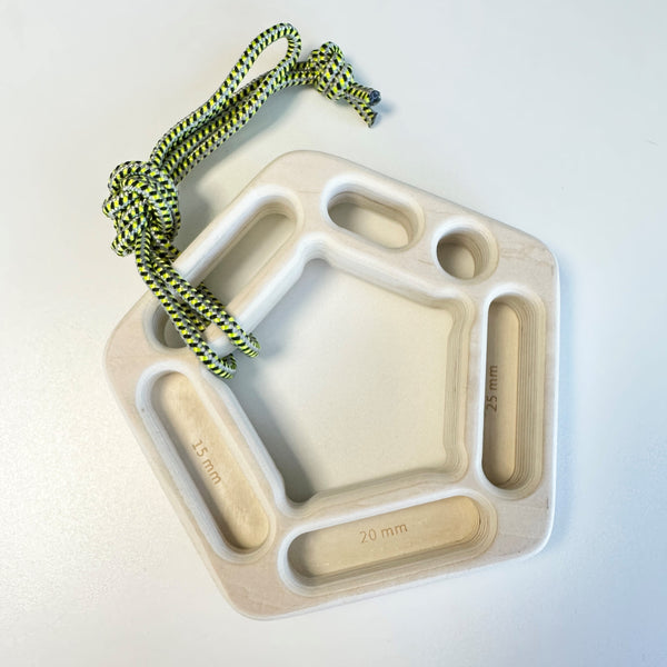 What We Say: The Penta is a versatile training tool with 7 grip options and a simple 360° system—just turn to switch grips! It helps strengthen your fingers, arms, and back with pulling and suspension exercises. You can also use it for full-body workouts like suspended push-ups. Made from soft, hand-friendly laminate wood.